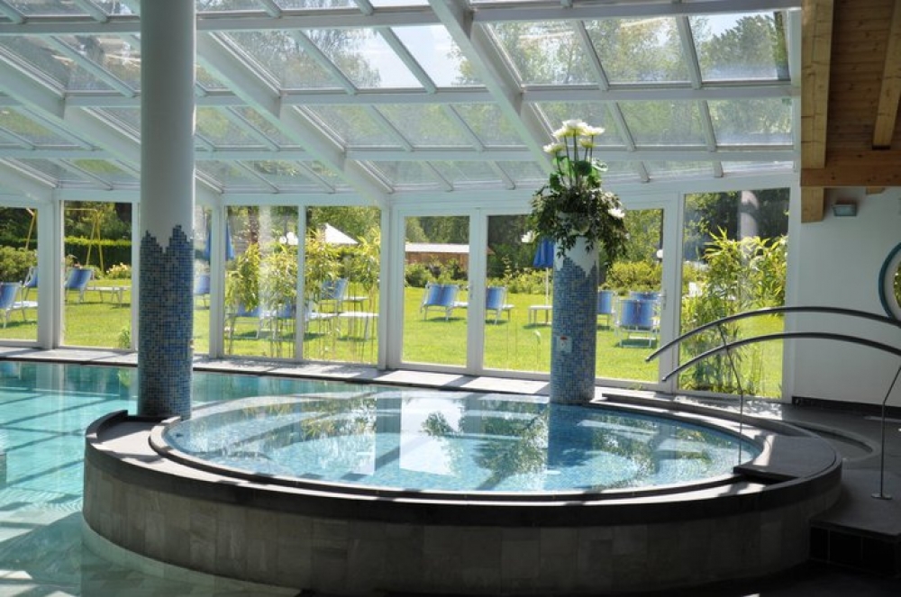 Il nostro centro Benessere nasce dall'esigenza di creare un ambiente dove gli ospiti possano ritrovare calma e relax. L’area è realizzata in bio-edilizia (legno e pietra), anche per armonizzarla rispetto allo splendido e immenso giardino fronte lago sul quale si affaccia e dal quale si percepiscono i profumi dei fiori. La piscina, coperta ma sempre esposta al sole, è rivestita da quarzite bianca. Un posto dove poter nuotare e farsi avvolere da getti d'acqua, trasportati dai suoni subacquei. Il nostro Thermarium è un'oasi di salute, nel quale le persone si trovano per ascoltare il proprio corpo e il proprio spirito. Il nostro centro Beauty è sempre all'avanguardia nel campo del benessere, con proposte di persorsi personalizzati.