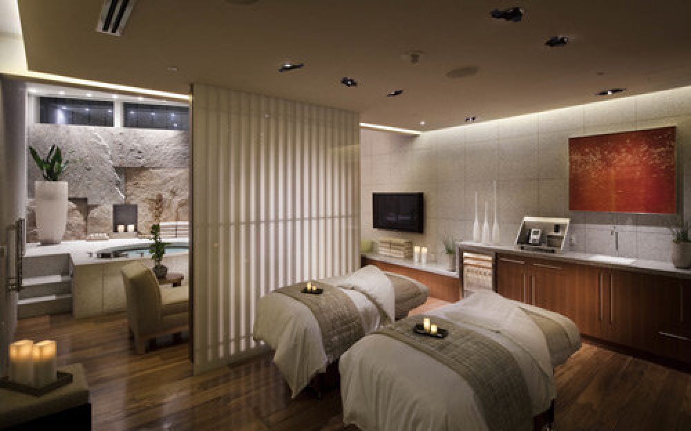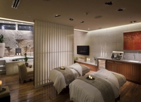 Upon entering The Spa & Salon at ARIA, guests are greeted by large Aji stone boulders within a tranquil water garden. These Japanese stones stand strong and still to represent the magnitude of nature while the water garden portrays a sense of calmness and serenity. Natural light shines on the water garden, reflecting patterns onto the ceiling. The sound of peaceful music, a signature scent wafting through the walkways, a view of the beautifully landscaped pool and mountain ranges, unique finishes and hand-selected artwork all come together for an overall transporting experience. The Spa at ARIA features 62 treatment rooms that offer a full array of treatments and therapeutic benefits, while the Salon at ARIA offers beautification services that leave you feeling both relaxed and pampered.