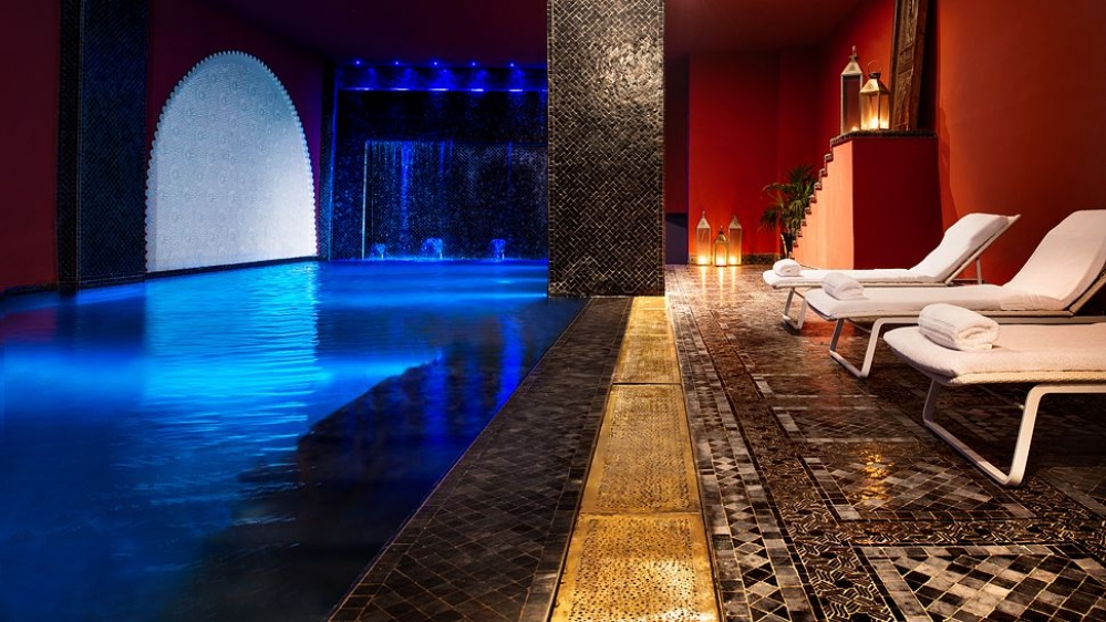 Le Spa abrite 14 cabines de traitement et propose un large éventail de soins et traitements exclusifs et traditionnels, entre autres, des massages aromathérapeutiques, des traitements et soins du visage spécifiques et des hammams marocains authentiques. Une piscine aux mosaïques raffinées, offre un cadre parfait pour un moment de relaxation avant ou après les soins.