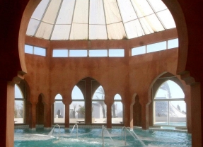 Partie intégrante du centre l’espace SPA , est décoré à la manière arabo-berbère .Tadelekt , bois, arabesques, et jardins intérieurs lui confèrent l’aspect d’un véritable palais de la forme .