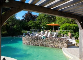 Le bassin de nage, aux eaux couleur céladon, est équipé de jets de massage et d’un système de nage à contre-courant. La pause « relaxation » se prend dans le hammam voûté, aux carreaux de pâte de verre et de tomettes, ou encore dans le sauna en bois de cèdre.