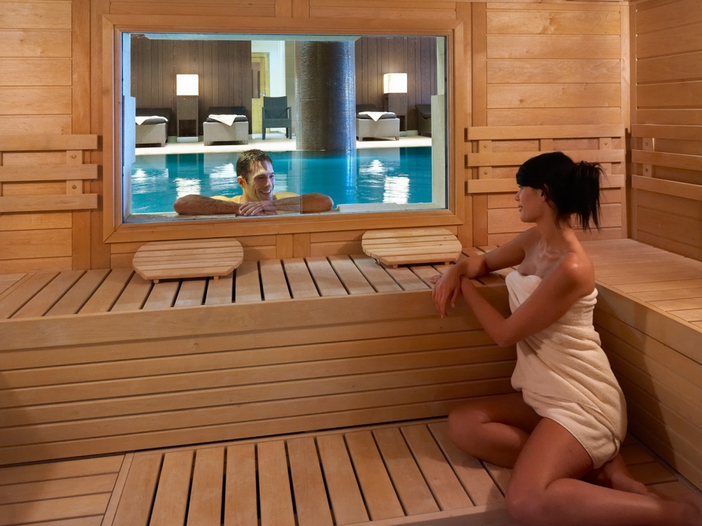 Le Guarda Golf Spa propose un choix d’espaces intimes, répartis sur ses 600 mètres carrés. Il bénéficie d’une piscine intérieure chauffée, d’un bain à bulles, sauna et hammam.