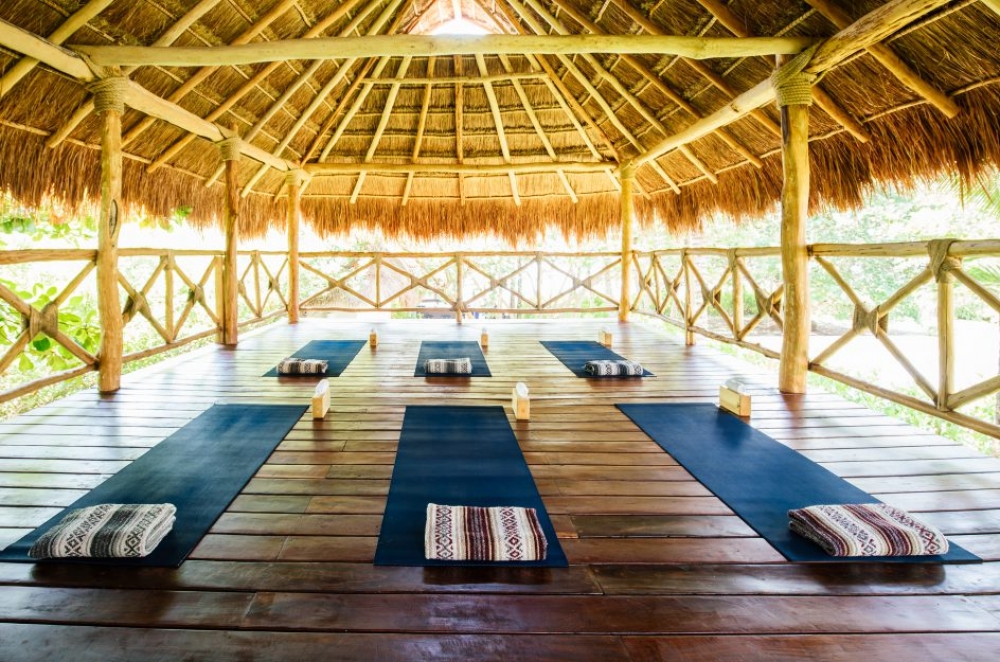 At the east end of the gardens is Hotel Esencia’s new health club overlooking the estate’s cenote. Housed under traditional palapa roofs, the fitness room, juice bar and spa integrate hallmarks of modern wellbeing with ancient customs of cultivating beauty, balance, and peace.