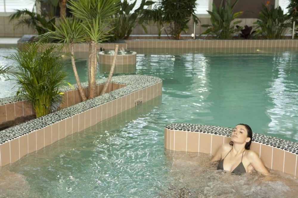 Vaste bassin d'eau douce chauffée à 32°, lits hydromassants, col de cygne, jacuzzis, hammam, sauna, tisanerie,(réservé aux personnes de plus de 18 ans).