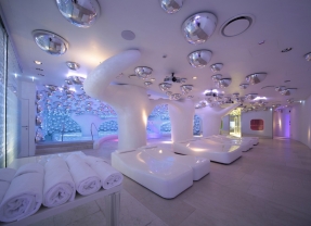Un tempio del benessere nel frenetico centro di Milano, dedicato alla bellezza ideato dall’architetto Simone Micheli: è l’Atomic Spa Suisse realizzata all’interno dell’Hotel Boscolo Exedra di Milano in corso Matteotti; la SPA del Boscolo Milano è la più grande della città: 600 mq, schermo di 15 metri con immagini e suoni rilassanti, pareti con sfere caleidoscopiche che riflettono il colore azzurro della piscina e favoriscono la corretta apertura ottica; cascata, sauna, bagno turco, vasca di reazione e 6 beauty room per originali trattamenti benessere.