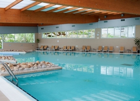 Entre sus tratamientos destaca la Balneación, aplicaciones a presión, peloides (parafangos), terapias manuales, tratamientos de estética faciales y corporales, y otros servicios como sauna, Termarium, gimnasio, piscinas interiores, etc.