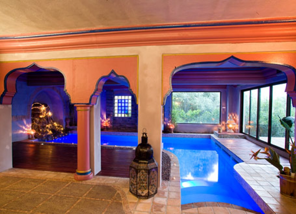 Que le voyage commence dans ce palais des mille et une nuits, porte argentée sculptée, voûte céleste, aquarium incrusté dans le sol,…