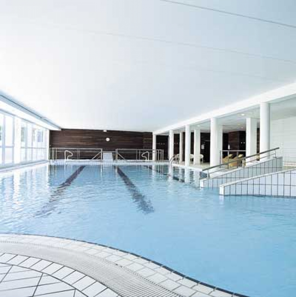 Au sein de la thalassothérapie de Douarnenez, tout n'est qu'invitation à la détente et à la remise en forme : même le bois se marie avec les couleurs océanes pour mieux appeler le corps et l'esprit à la sérénité.. Les 1 000 m2 dédiés à la thalassothérapie se divisent en quatre espaces de bien-être. Au cœur du dispositif, l'espace aqua-détente, accessible à tous les publics, il offre de nombreux équipements comme la piscine d'eau de mer ou une salle de cardio-training ainsi qu'une superbe vue sur la baie. Les curistes ont également à leur disposition un espace de soins où algothérapie et hydrothérapie sont pratiquées, un espace massage et modelage où différentes techniques sont proposées et un espace spa beauté avec un large choix de soins du visage et du corps.