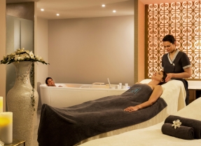 Prévenir le burn out, arrêter de fumer, suivre un programme post-natal ou s’offrir un rituel beauté. Trois piscines d’eau de mer chauffées à l’année, deux cabines VIP de 35 m² avec tables de modelage et baignoire balnéo, soins pour le visage et le corps.