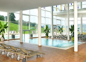 Indoor and heated outdoor pool with 35° C thermal spa water, freshwater outdoor sport pool